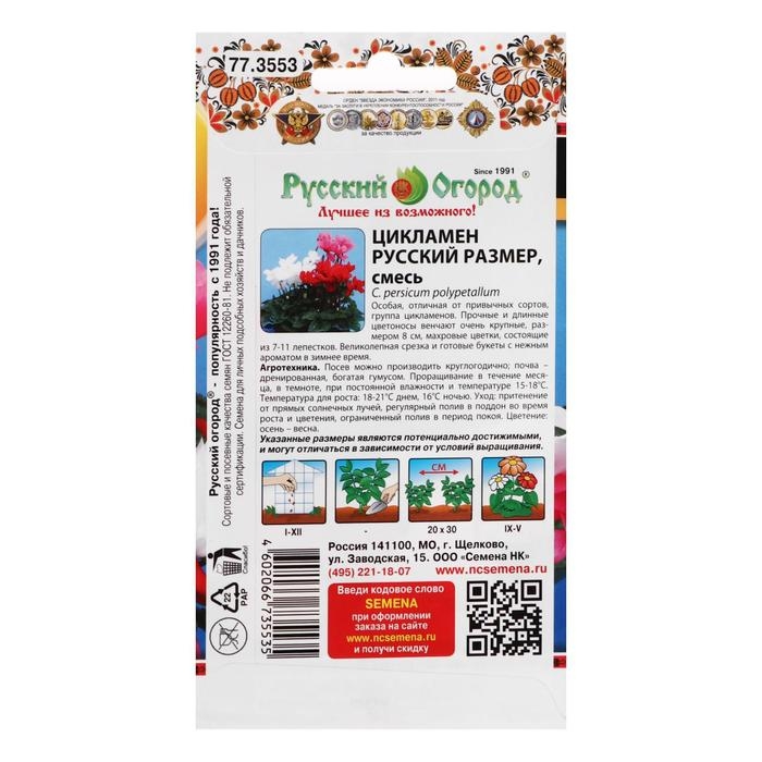 Цикламен сорта Русский размер одинаково хорошо себя чувствует как в помещении, в качестве комнатного растения, так и на открытом воздухе, представляя собой великолепный декоративно-цветочный экземпляр белой, розовой и красной палитры.