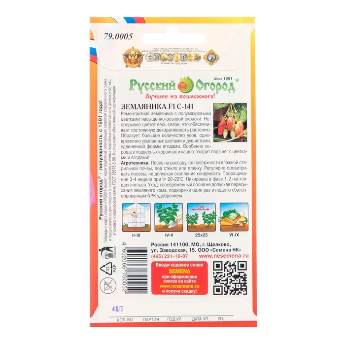 Семена Земляника "Гигант русский", F1, серия Русский богатырь, 5 шт