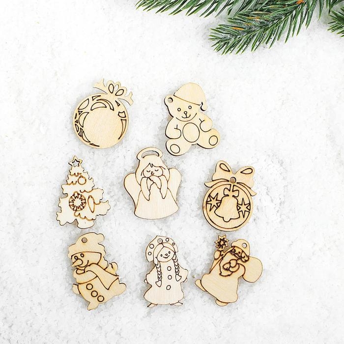 Модель из дерева «Подвески. Украшаем ёлочку» 5 подвесок в наборе