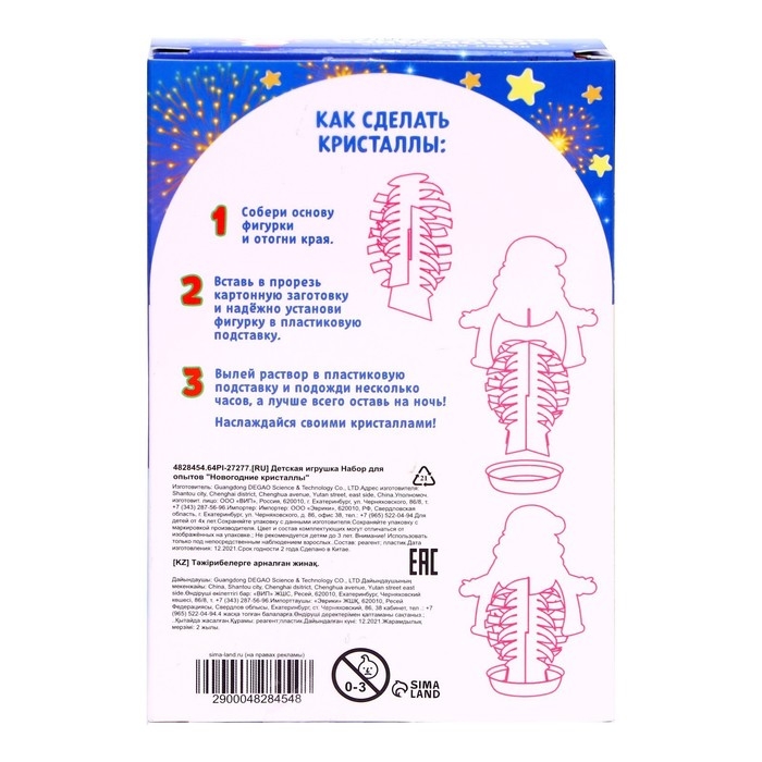 Набор для выращивания кристалла «Опыты. Чудесные кристаллы», Дед Мороз