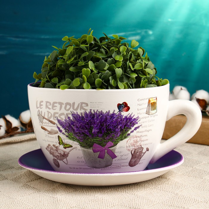 Горшок в форме чашки "Блум" лаванда, 19х24х12см