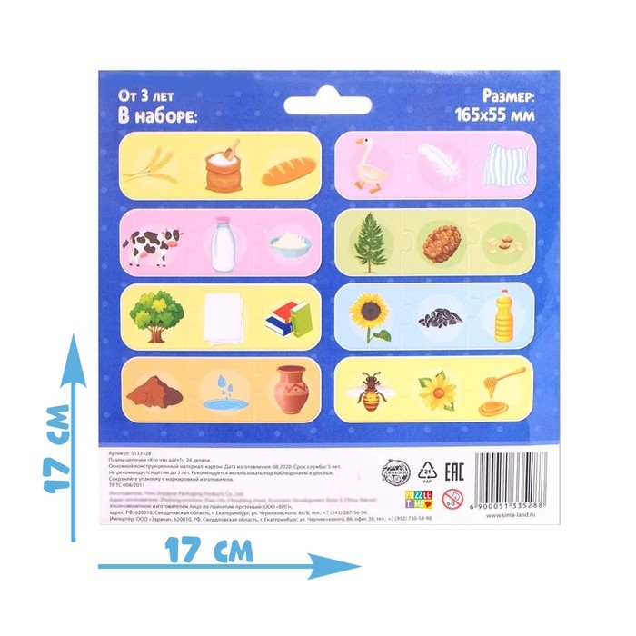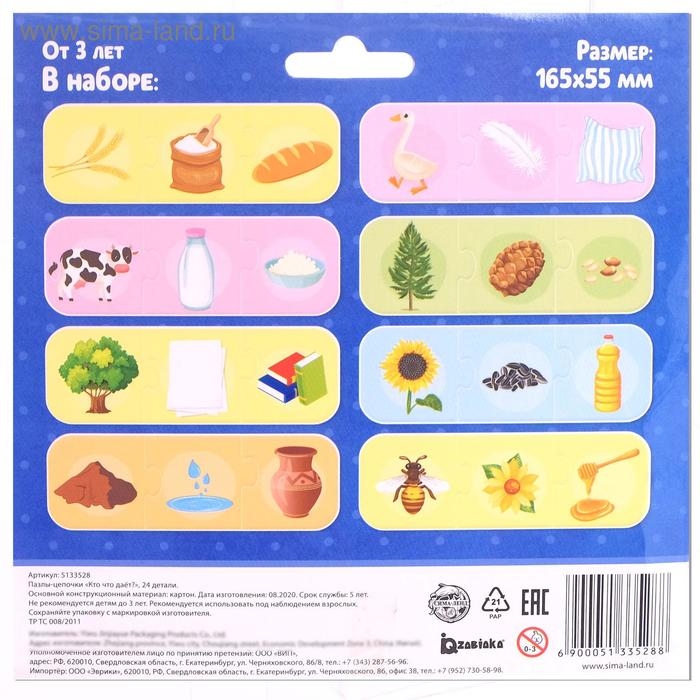 Умные пазлы - цепочки «Кто что даёт?», 8 цепочек, 24 детали
