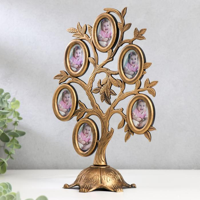 Фоторамка пластик на 6 фото 4,5х3 см "Дерево с плодами" тёмное золото 26,5х19,5х11 см