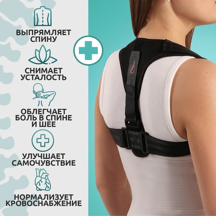 Массажёр-фиксатор для осанки, на липучках, размер M, цвет чёрный