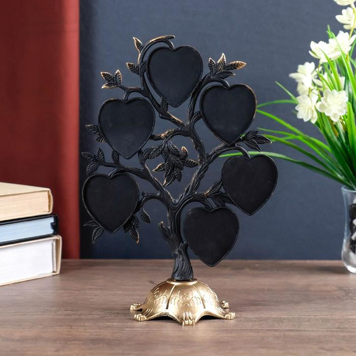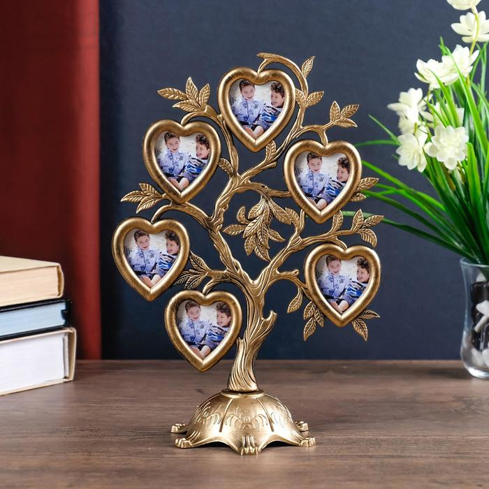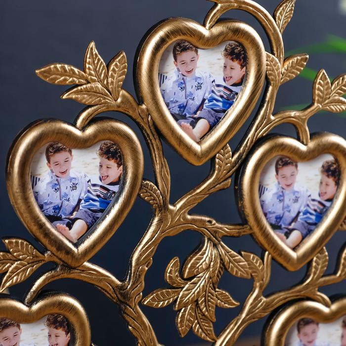Фоторамка пластик на 6 фото 4,5х3 см "Дерево с сердцами" тёмное золото 26,5х19,5х11 см