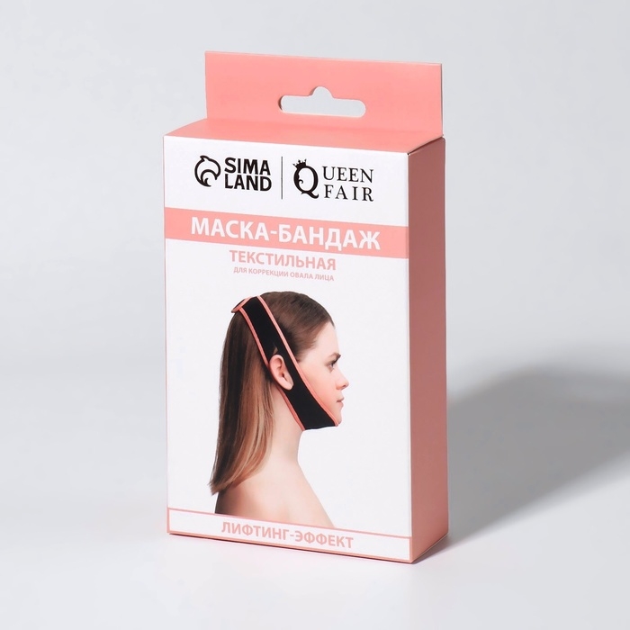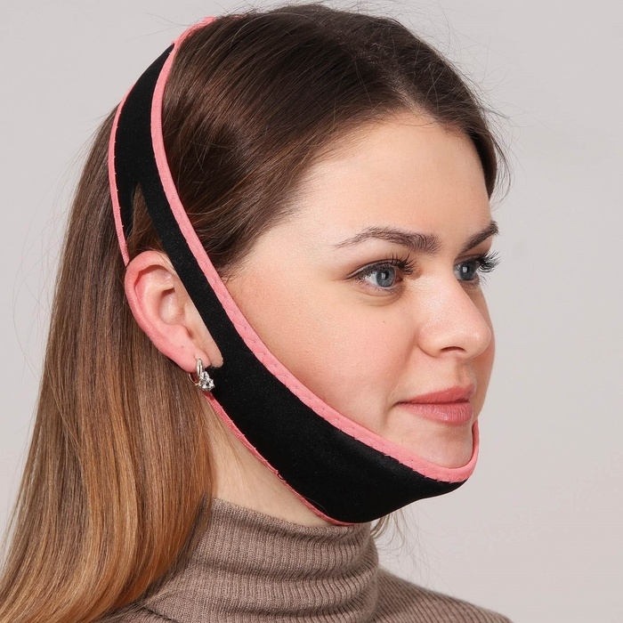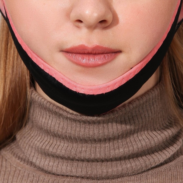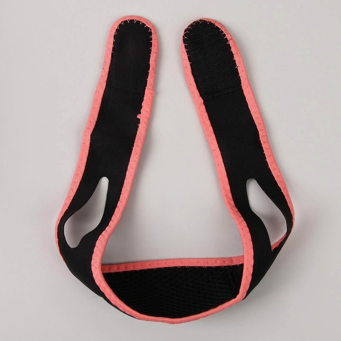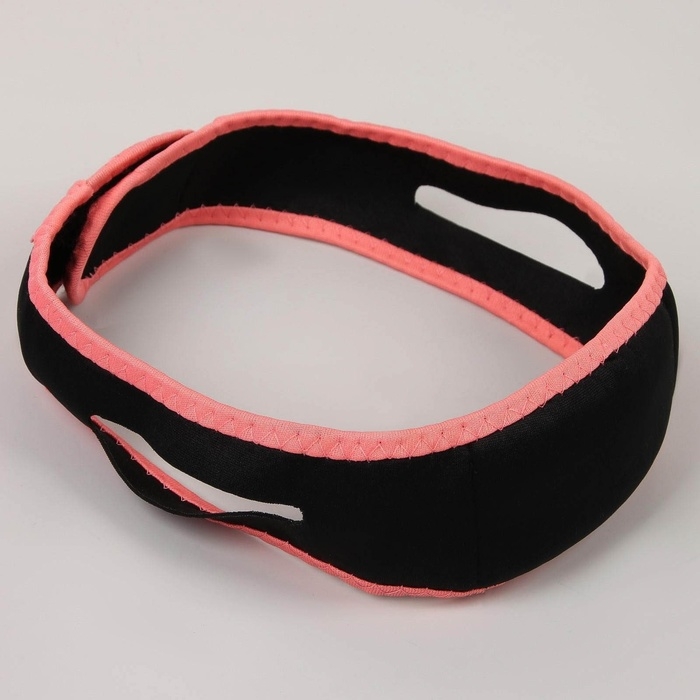 Маска текстильная для коррекции овала лица, на липучке, 62 × 9,5 см, цвет чёрный/розовый