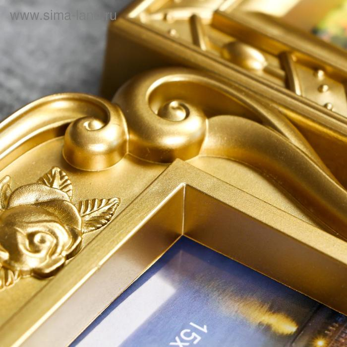 Фоторамка пластик на 3 фото 10х15 см "Рамка с розами" золото 19,5х47 см