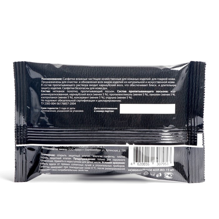 Салфетки деликатно очищают поверхность, сохраняя интенсивность цвета изделий из натуральной и искусственной гладкой кожи. В состав пропитывающего раствора включен карнаубский воск, который придает блеск и обеспечивает дополнительную защиту.