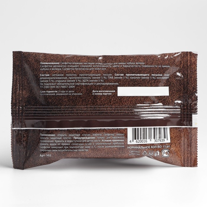 Салфетки деликатно очищают, сохраняя интенсивность цвета и бархатистость поверхности из замши, нубука и велюра. Салфетки безопасны для кожи рук.