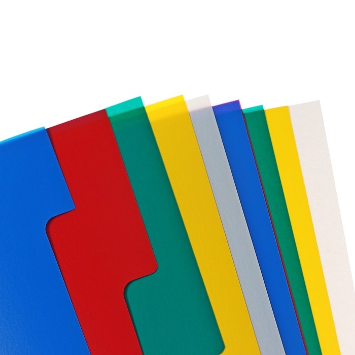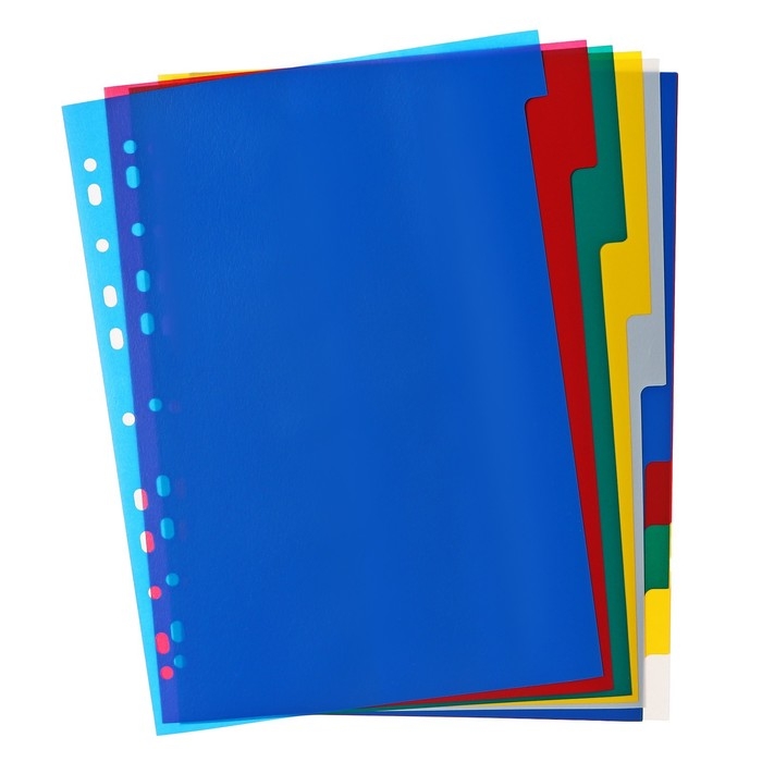 Разделители помогут Вам комфортно сортировать, архивировать и систематизировать любые документы внутри папок разного вида. Они выполнены из прочного пластика и имеют универсальную перфорацию для подшивки в папки.
