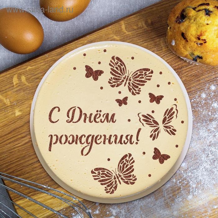 Диаметр составляет 30 сантиметров, что позволяет легко и равномерно наносить надпись на большие площади тортов.