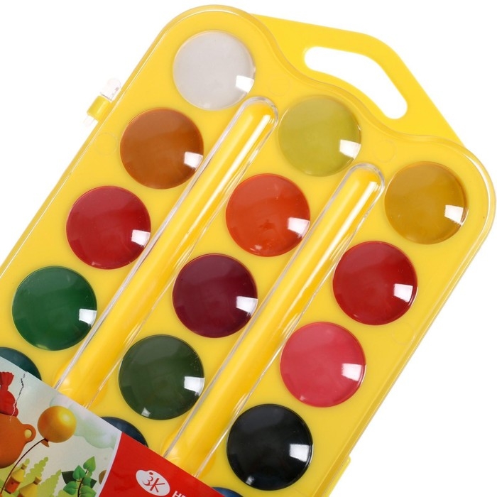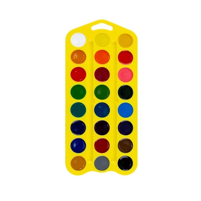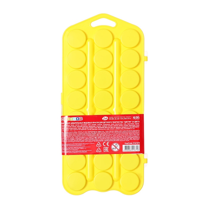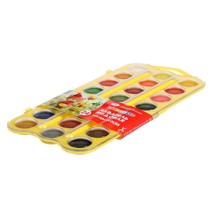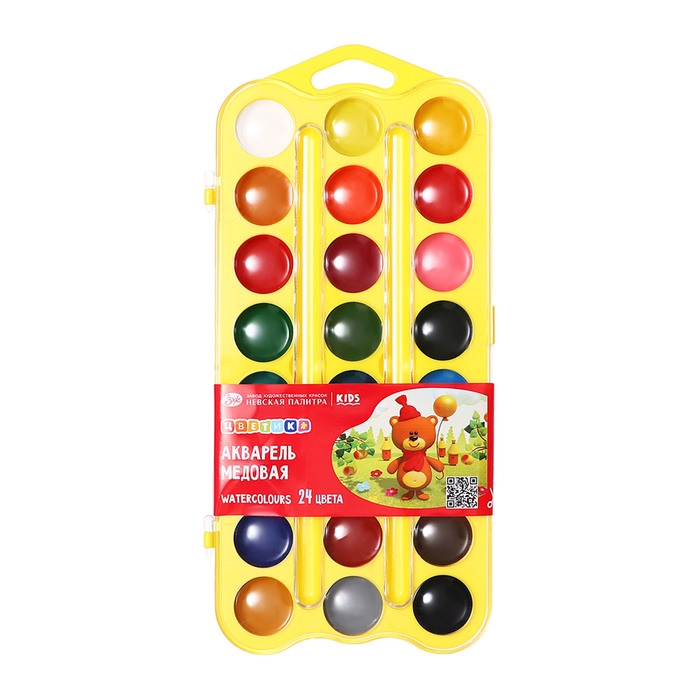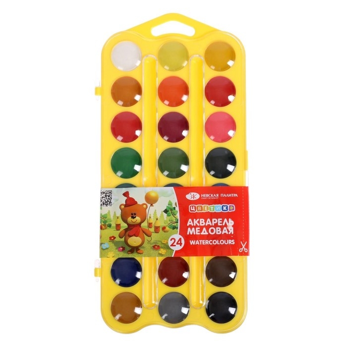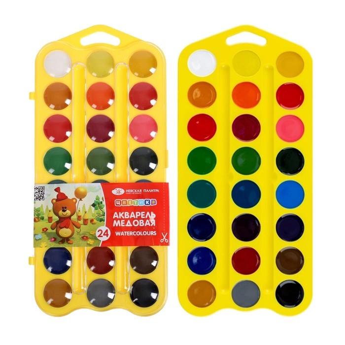 Акварель медовая 24 цвета, ЗХК "Цветик", без кисти, жёлтый пластиковый футляр с петлей, 27421678