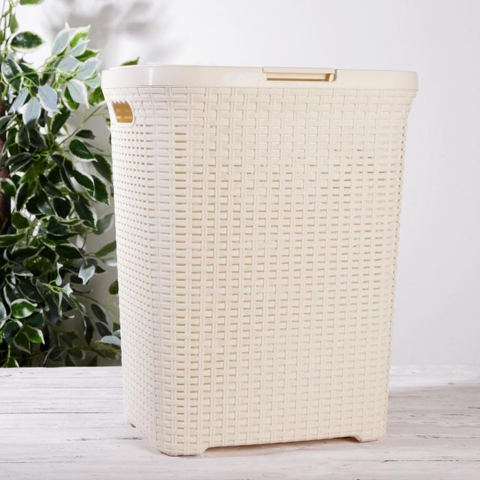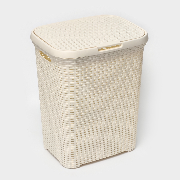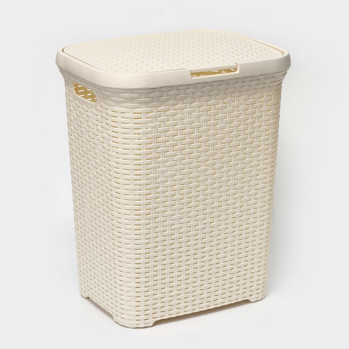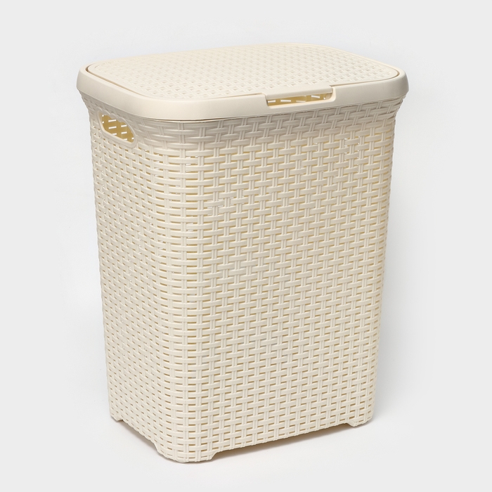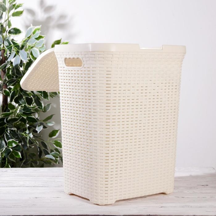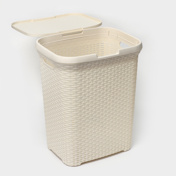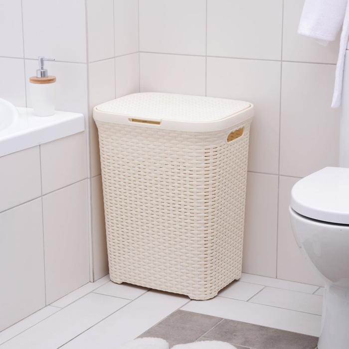 Корзина бельевая с крышкой, 60 л, 34×44×56 см, цвет слоновая кость