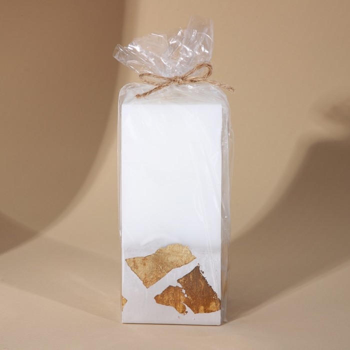 Свеча интерьерная белая с бетоном и золотом, 6 х 6 х 14 см