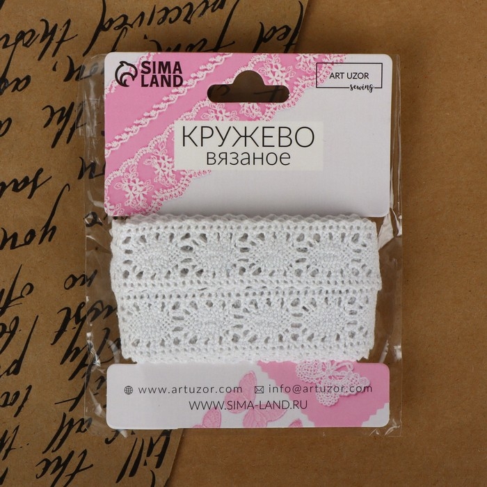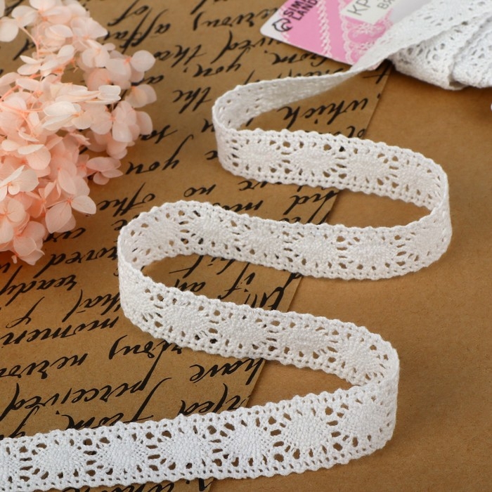 Кружево вязаное, 20 мм × 2,7 ± 0,5 м, цвет белый