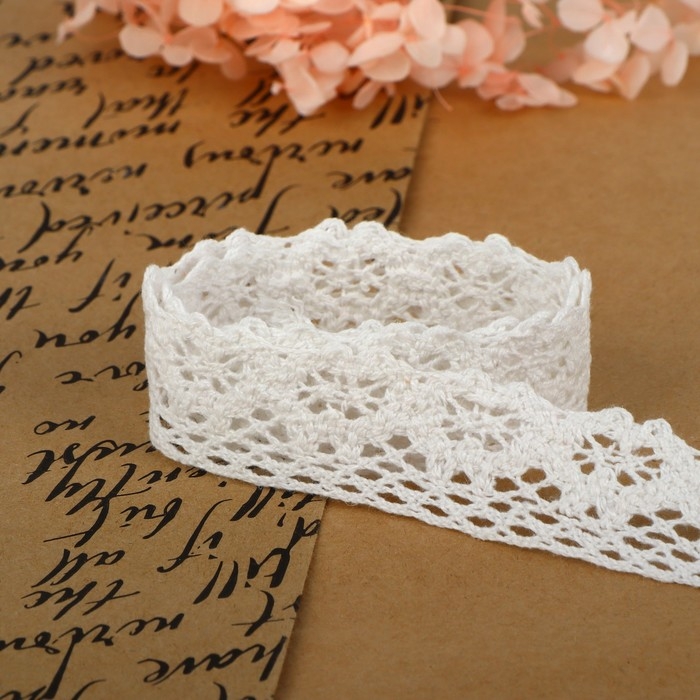 Кружево гипюровое, 35 мм × 9 ± 0,5 м, цвет белый