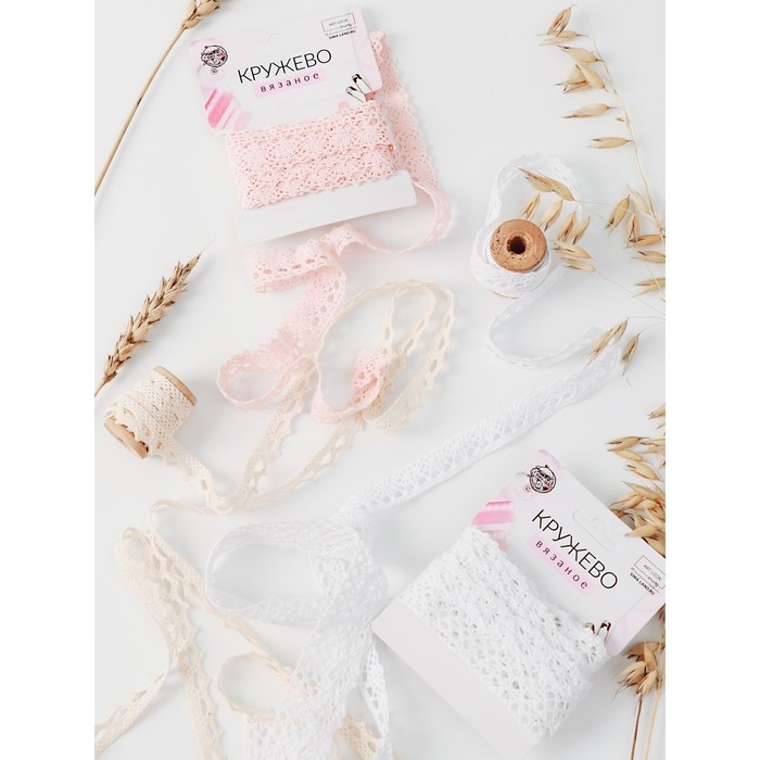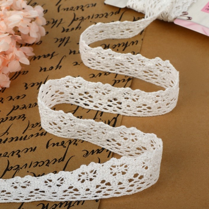 Кружево вязаное, 27 ± 3 мм × 2,7 ± 0,5 м, цвет белый