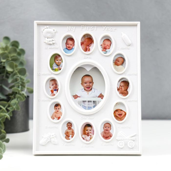Фоторамка пластик на 13 фото 4х3, 9х7 см "Мой первый год" белая 20х25,5 см