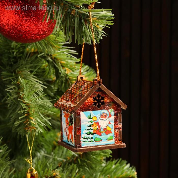 Игрушка на ёлку "Домик" мал. с подсветкой, микс, 5х6,5х5см