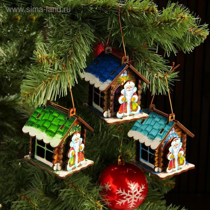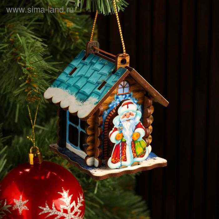 Игрушка на ёлку "Домик" с Дедом морозом, микс, 9х6,5х6,5см