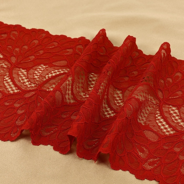 Кружевная эластичная ткань «Павлиний хвост», 180 мм × 2,7 ± 0,5 м, цвет бордовый