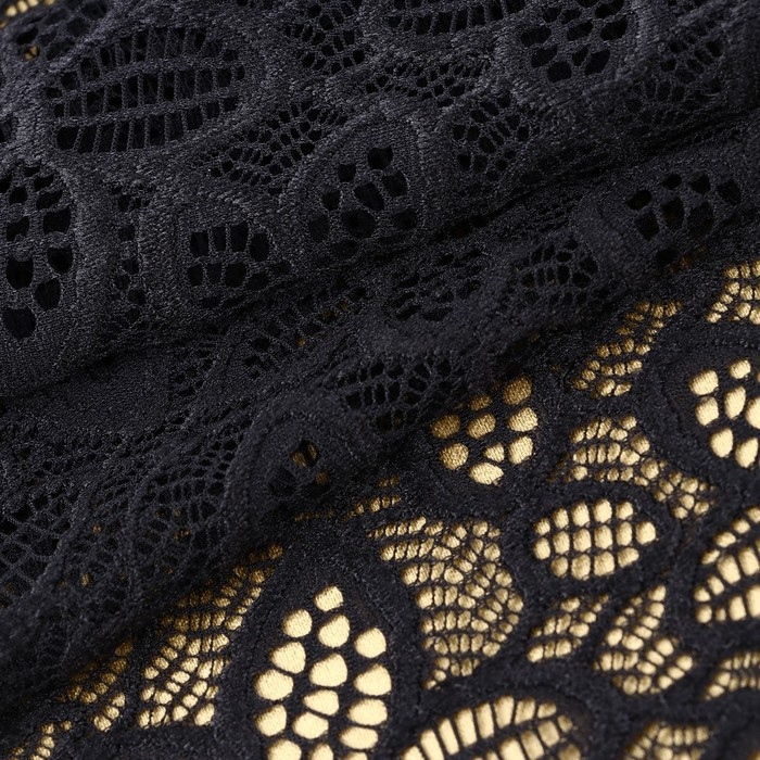Эластичное кружевное полотно не имеет тканной основы. Благодаря своей пластичности кружево тянется, а переплетения нитей формируют воздушную выразительность.