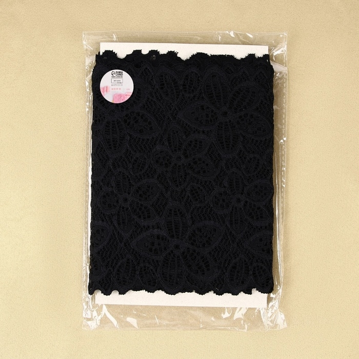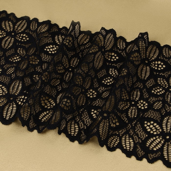 Кружевная эластичная ткань «Пятилистник», 170 мм × 2,7 ± 0,5 м, цвет чёрный