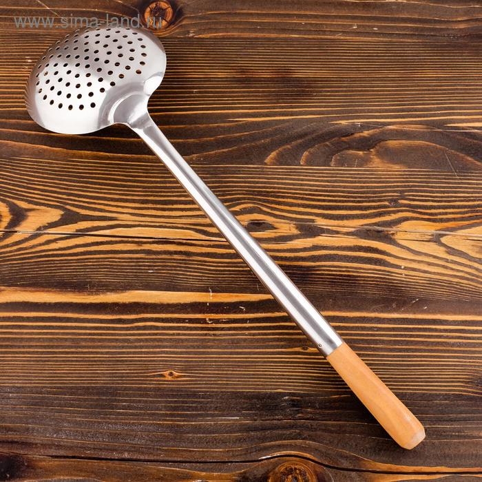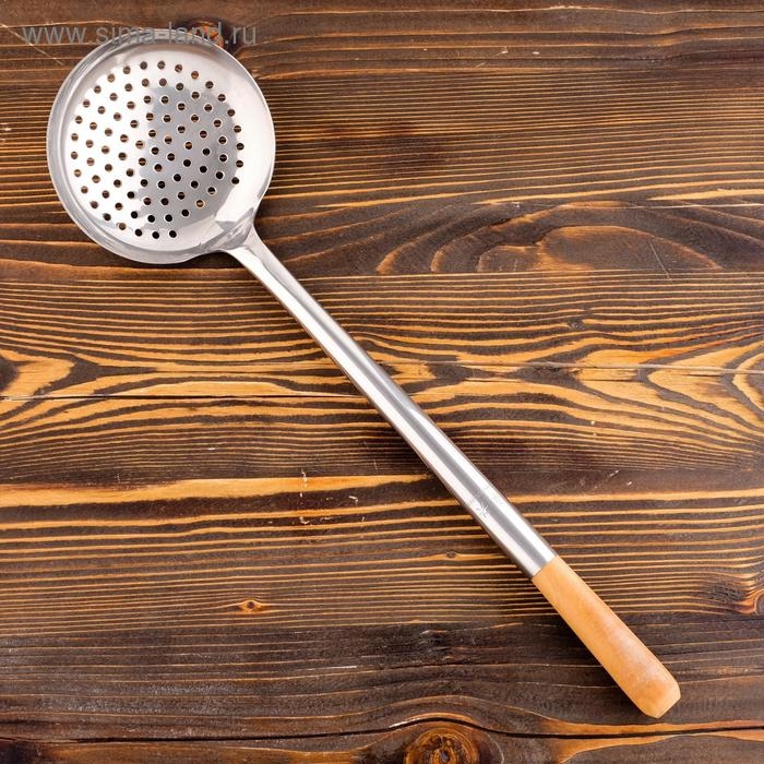 Шумовка для казана узбекская 53см, диаметр 15см, светлая деревянная ручка