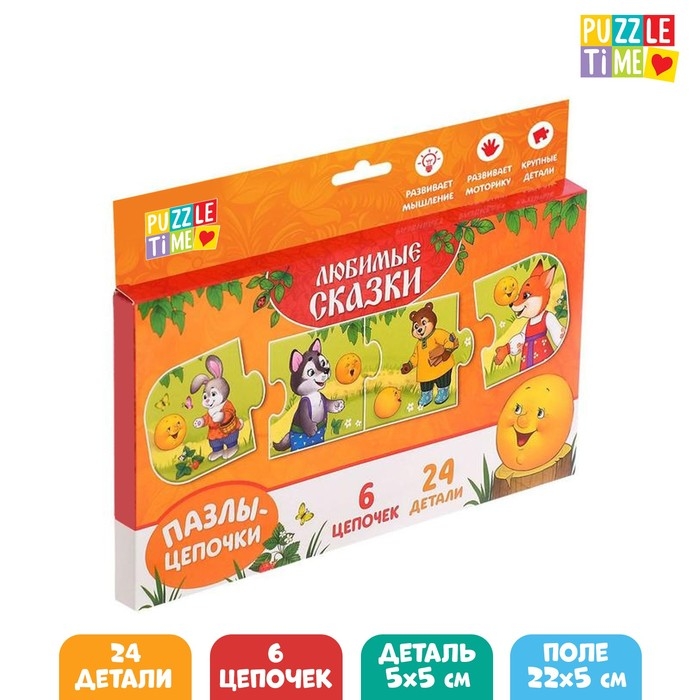 Умные пазлы-цепочки «Любимые сказки», 6 цепочек, 24 детали