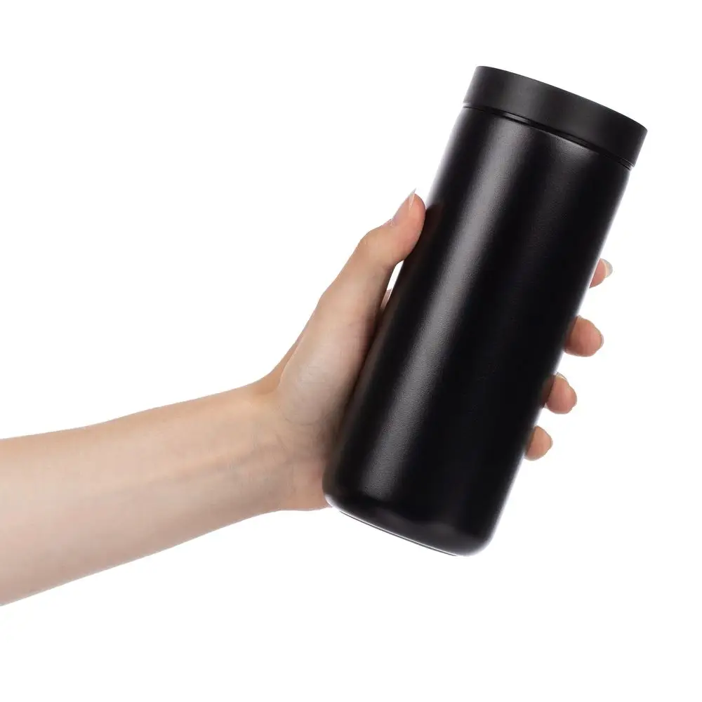 - Герметичная завинчивающаяся крышка с силиконовым уплотнителем и питьевой системой с клапаном — технология 360° позволяет одним нажатием открывать кружку и пить с любой стороны
