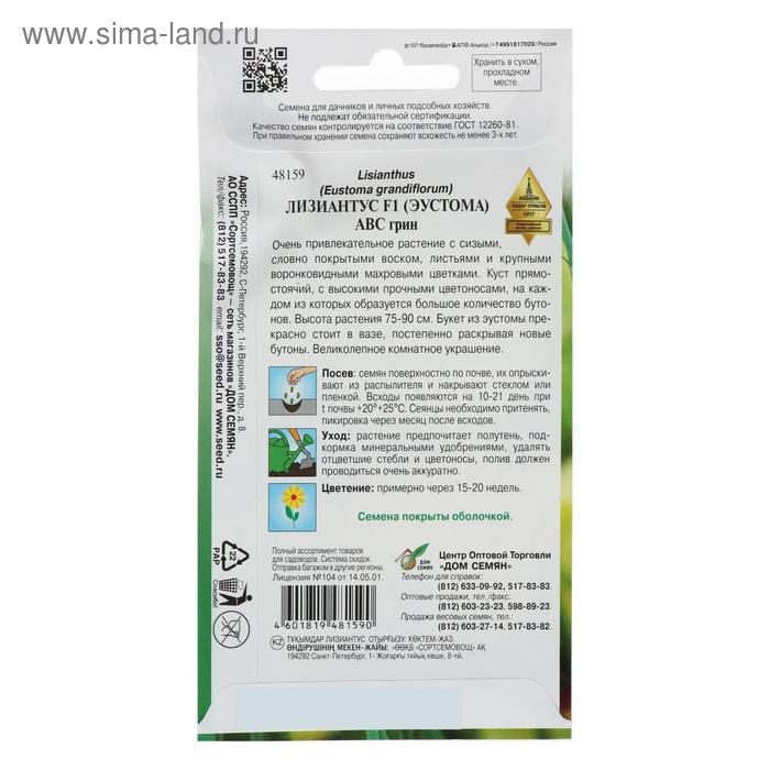 Семена цветов Лизиантус F1( Эустома) АВС грин, 5 шт,