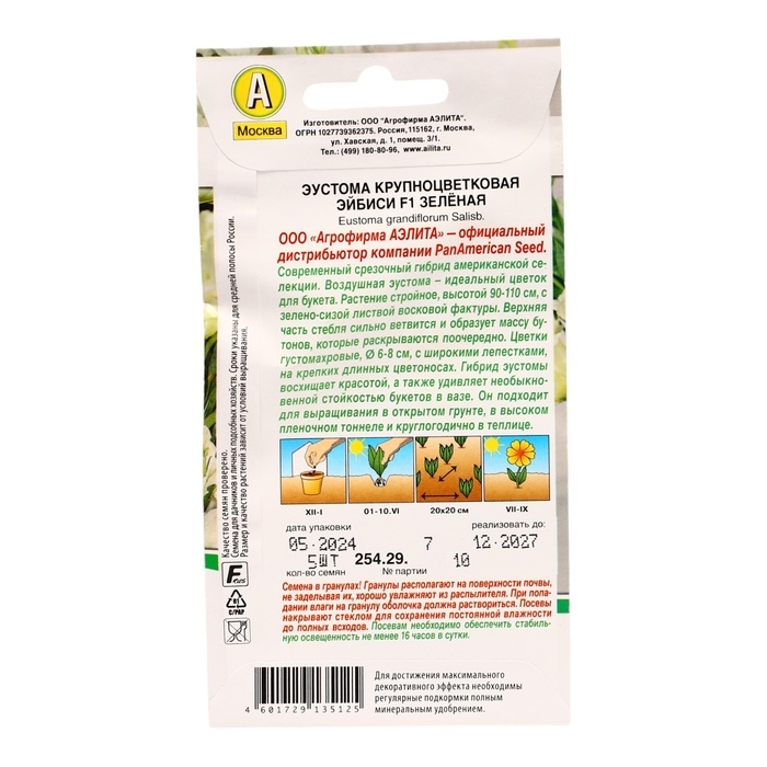 Семена Эустома "Эйбиси" F1 зеленая крупноцветковая махровая, 5 шт