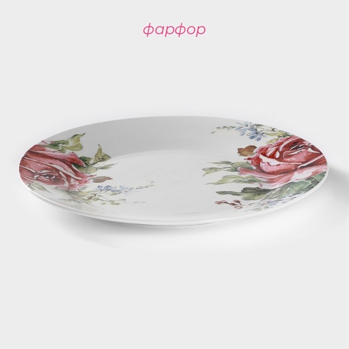 Тарелка фарфоровая обеденная Доляна «Роза», d=25,5 см, цвет белый