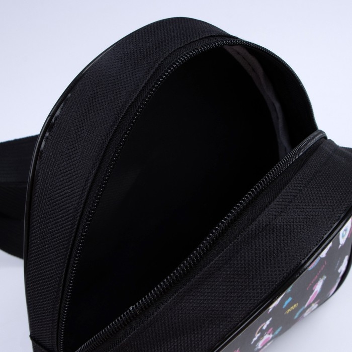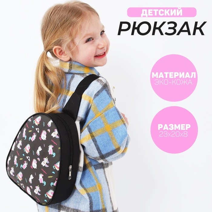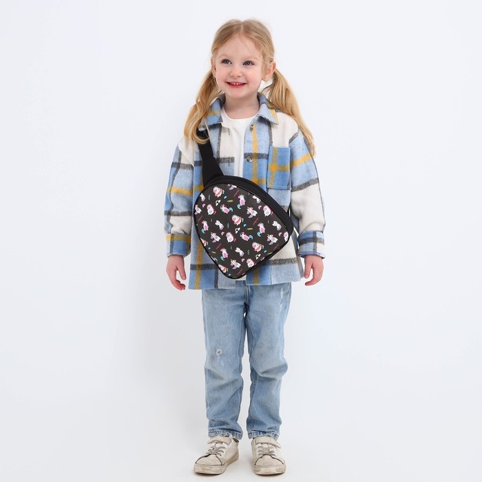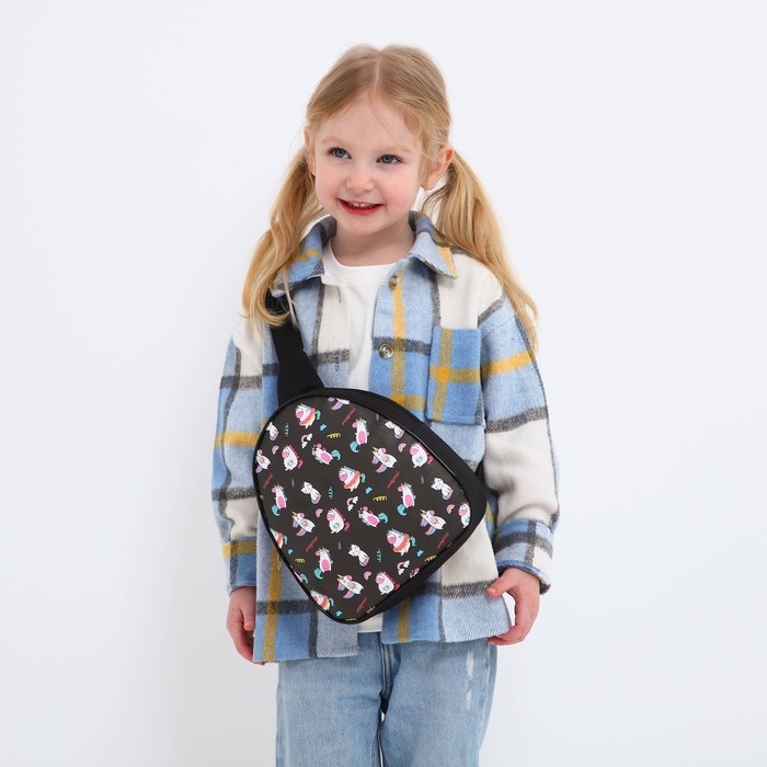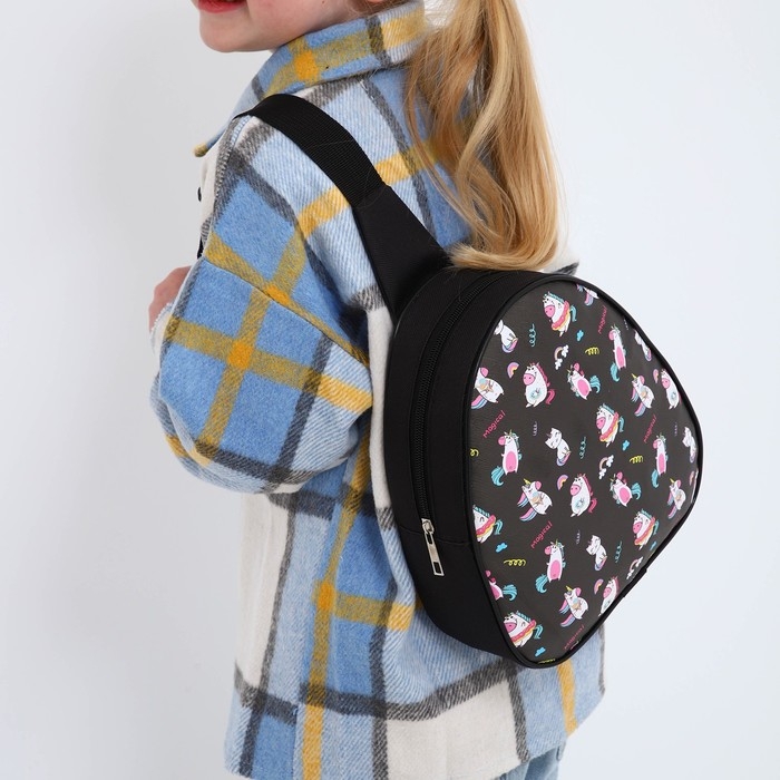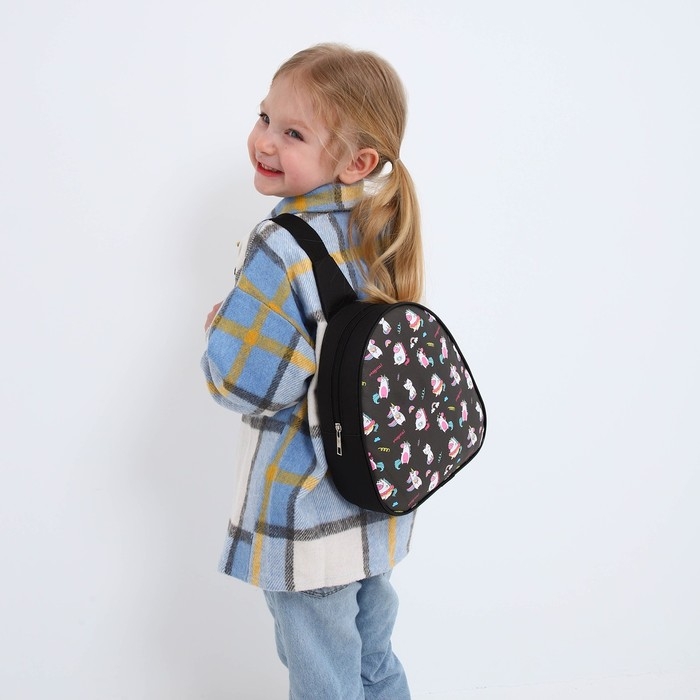 Рюкзак детский для девочки через плечо «Единорог», отдел на молнии, цвет чёрный