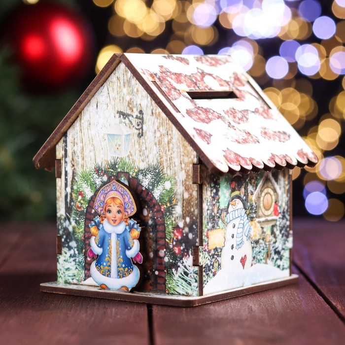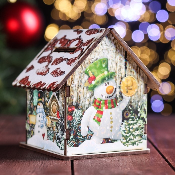 Новогодний домик-копилка "Домик", 10х10х11 см, микс