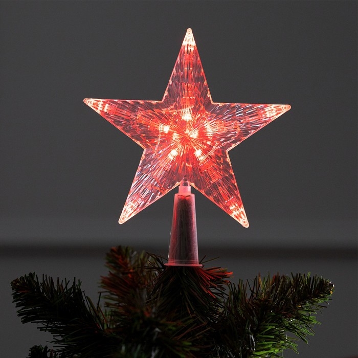 Светодиодная верхушка на ёлку «Звезда красная» 15 см, 10 LED, провод 2 метра, 220 В, свечение красное