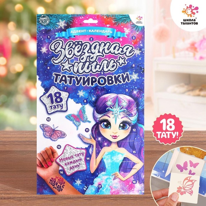 Адвент-календарь с детскими татуировками «Звёздная пыль»