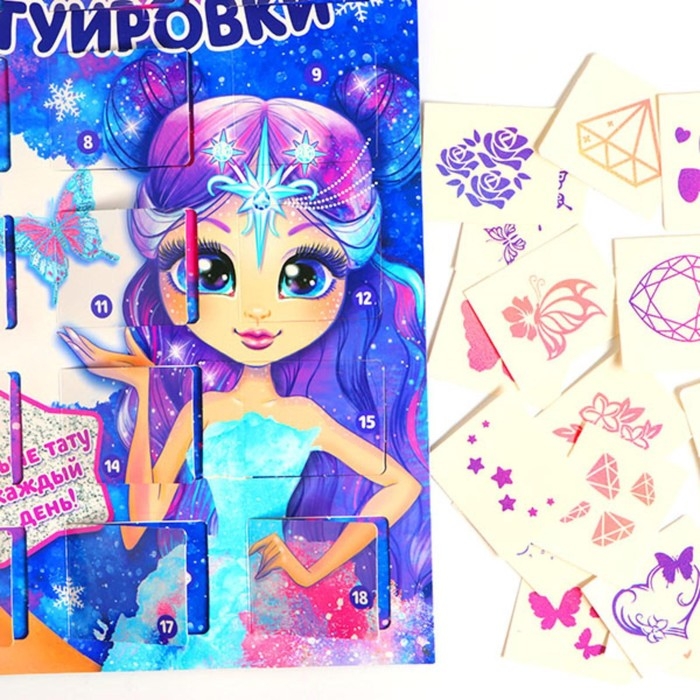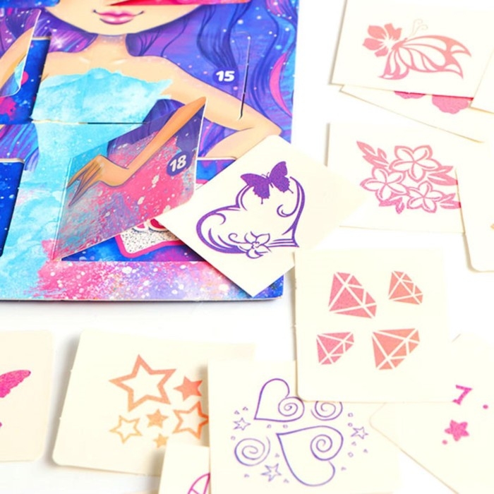 Адвент-календарь с детскими татуировками-переводками понравится любому ребёнку.
