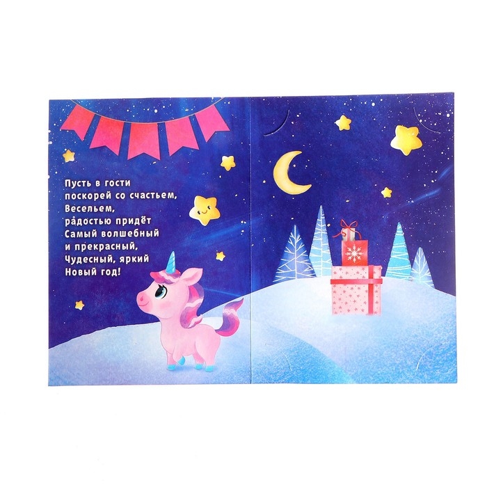 Открытка - фреска своими руками на новый год «Единорог», новогодний набор для творчества