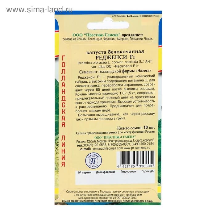 Семена Капусты белокочанной "Редженси", F1, 10 шт.