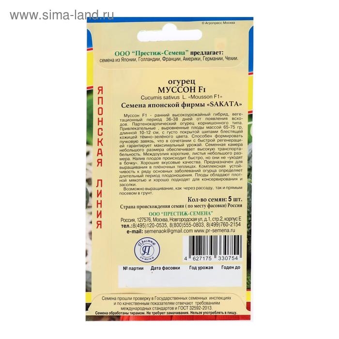 Семена Огурец "Муссон" F1, 5 шт