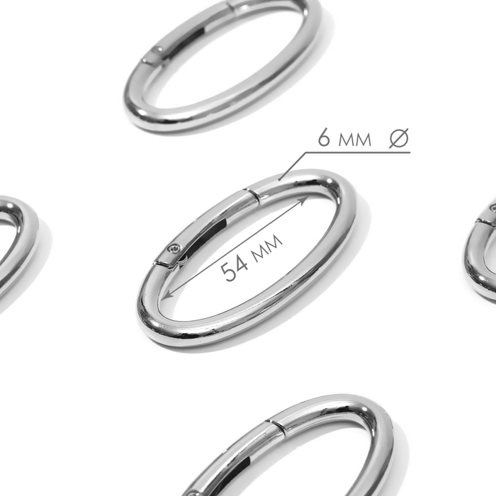 Овал-карабин, 6,5 × 3,1 см / 54 × 6 мм, 5 шт, цвет серебряный