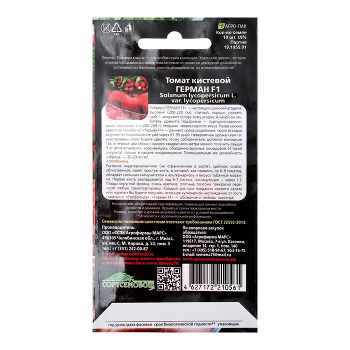 Герман F1 — раннего срока созревания, после всходов вступает в плодоношение уже через 93-95 дней. Невероятные урожаи вам гарантированы, если будете уделять этому соблазнителю должное внимание. Так, в первые два сбора с одного квадратного метра можно получить свыше 9 кг аппетитнейших, красивейших, обалденно-вкусных помидоров. И такой результат только в начале плодоношения. Потенциальная же урожайность гибрида — 20-23 кг/м²