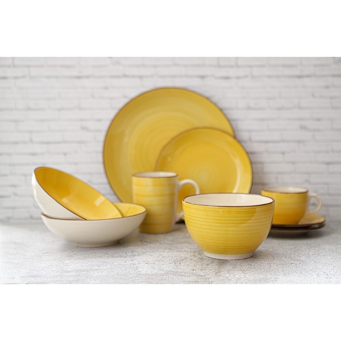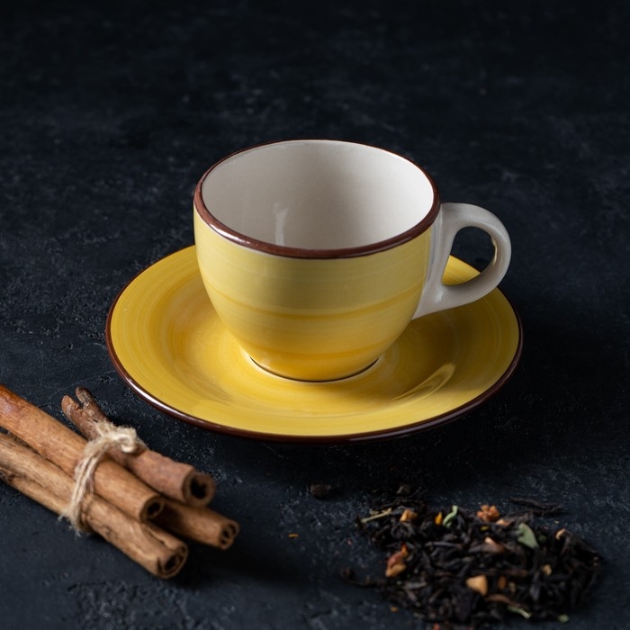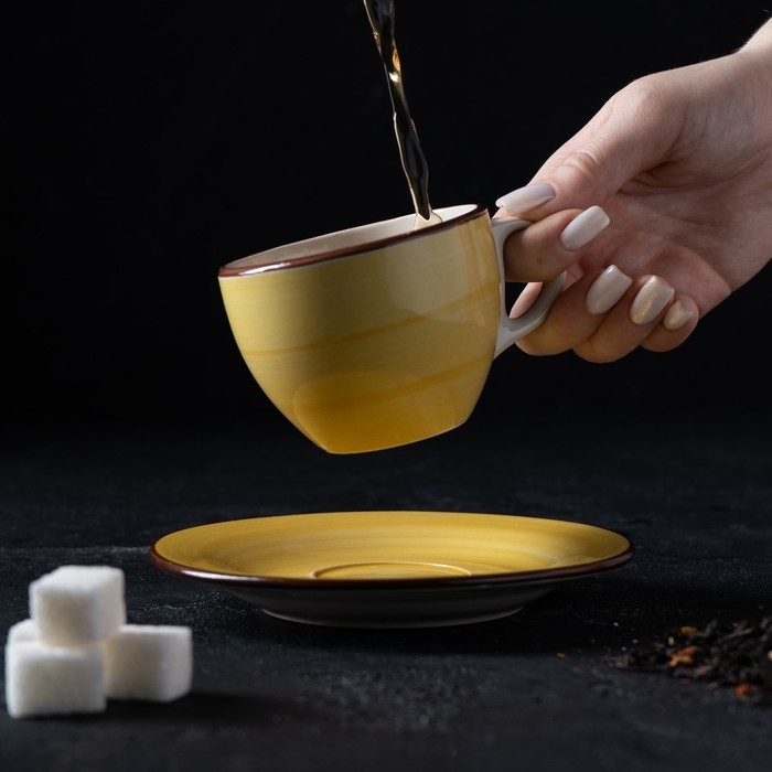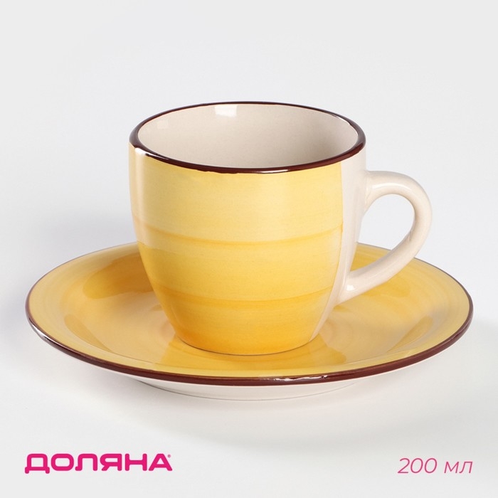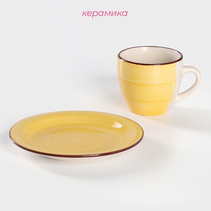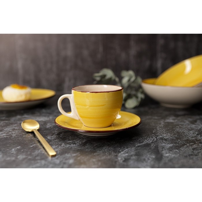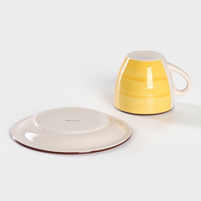 Чайная пара Доляна «Морской мир», 2 предмета: чашка 200 мл, блюдце d=14,5 см, цвет жёлтый