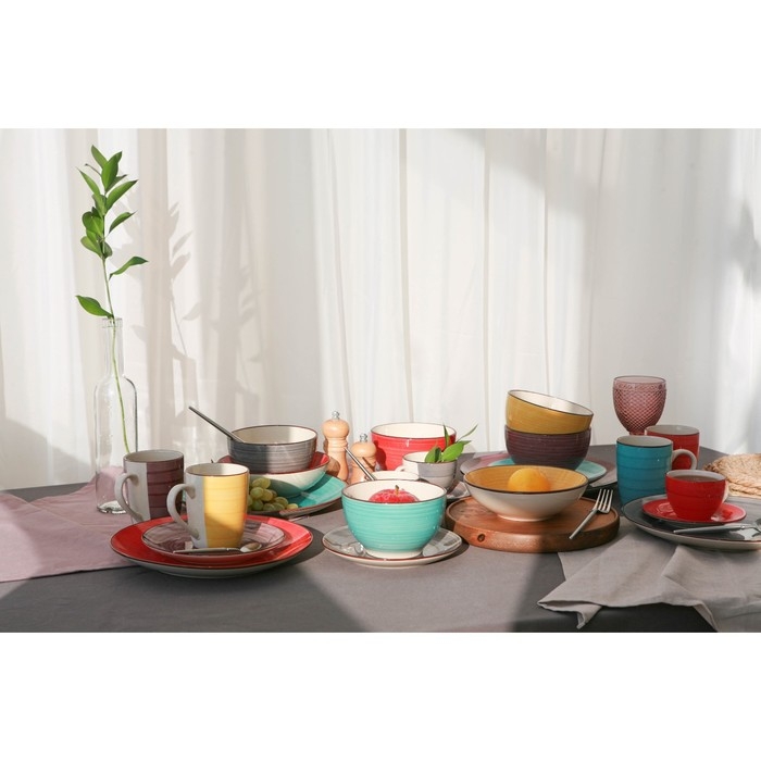 Серия посуды «Морской мир» от торговой марки Доляна обладает палитрой ярких и сочных цветов. Характерные линии и тёмная окантовка придают изделиям оригинальный вид. Теперь сервировка стола будет приносить вам ещё больше удовольствия!