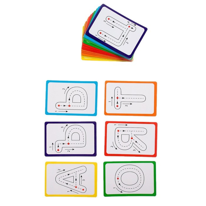 В комплекте 33 карточки с буквами и маркер «пиши-стирай».