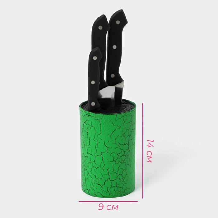 Подставка для ножей с наполнителем Доляна «Кракле», 14×9 см, soft-touch, цвет зелёный