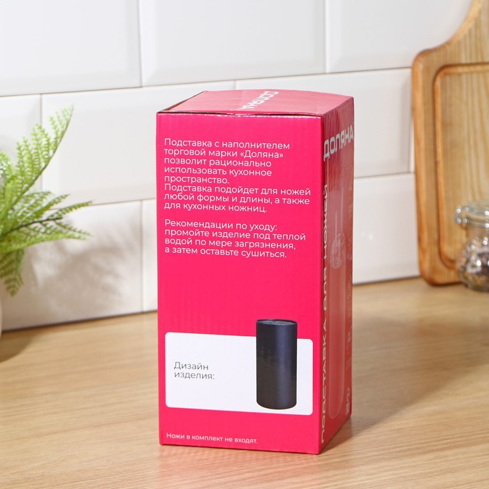 Подставка с наполнителем идеальна для ножа любой формы и длины, также подходит для кухонных ножниц.