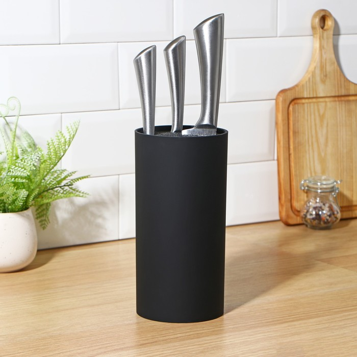 Подставка для ножей с наполнителем Доляна «Нео», 22×11 см, покрытие soft-touch, цвет чёрный