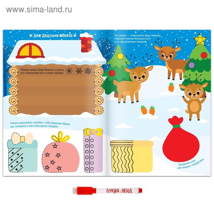 Многоразовая книжка с маркером поможет скоротать время перед долгожданным праздником, а ещё не даст заскучать и поможет потренировать важные навыки.